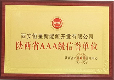 由西安恒星新能源開發有限公司生產的“生物質醇油”產品,經陜西省產品質量管理中心歷經兩年產品跟蹤抽查,于2019年喜頒“陜西省AAA級信譽單位”。這是對產品的肯定,也是對公司的鞭策,我們要嚴把產品質量關,把優質的產品送給客戶,讓西安百姓收獲更多的藍天、白云。