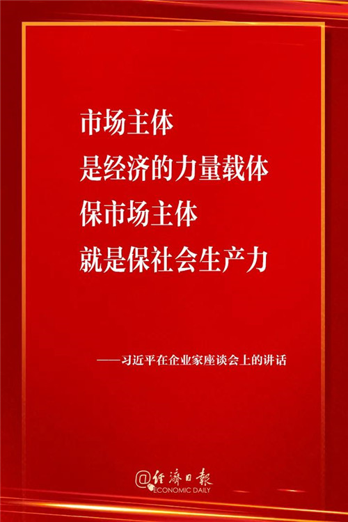 習近平強調,黨中央明確提出要扎實做好“六穩”工作、落實“六保”任務,各地區各部門出臺了一系列保護支持市場主體的政策措施,要加大政策支持力度,激發市場主體活力,使廣大市場主體不僅能夠正常生存,而且能夠實現更大發展。一要落實好紓困惠企政策。實施好更加積極有為的財政政策、更加穩健靈活的貨幣政策,增強宏觀政策的針對性和時效性,繼續減稅降費、減租降息,確保各項紓困措施直達基層、直接惠及市場主體,強化對市場主體的金融支持,發展普惠金融,支持適銷對路出口商品開拓國內市場。二要打造市場化、法治化、國際化營商環境。實施好民法典和相關法律法規,依法平等保護國有、民營、外資等各種所有制企業產權和自主經營權,全面實施市場準入負面清單制度,實施好外商投資法,放寬市場準入,推動貿易和投資便利化。三要構建親清政商關系。各級領導干部要光明磊落同企業交往,了解企業家所思所想、所困所惑,涉企政策制定要多聽企業家意見和建議,同時要堅決防止權錢交易、商業賄賂等問題損害政商關系和營商環境。要更多提供優質公共服務,支持企業家以恒心辦恒業,扎根中國市場,深耕中國市場。四要高度重視支持個體工商戶發展。積極幫助個體工商戶解決租金、稅費、社保、融資等方面難題,提供更直接更有效的政策幫扶。
